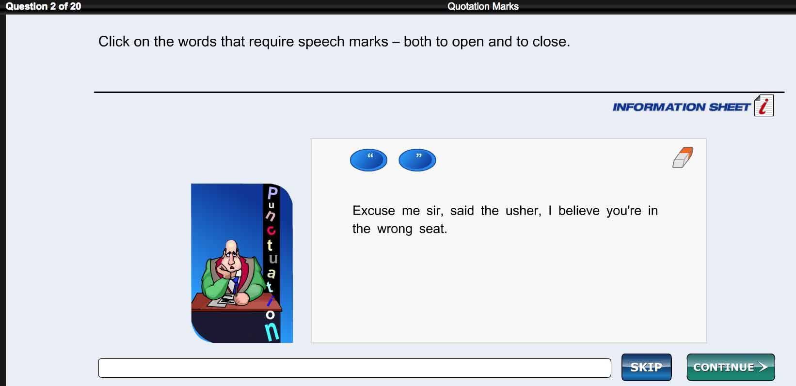 This often least-liked topic can make the world of difference to the meaning of a sentence or passage. Students will cover all aspects of punctuation from full stops to the dreaded correct use of the apostrophe.